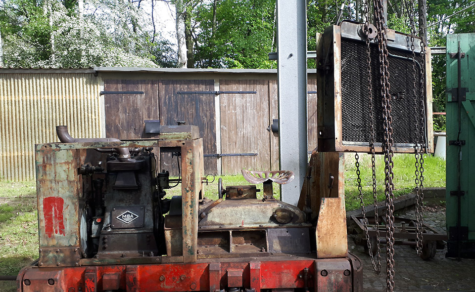 wo der bereitstehende Austauschmotor vom O&K-Typ 112V2D erst