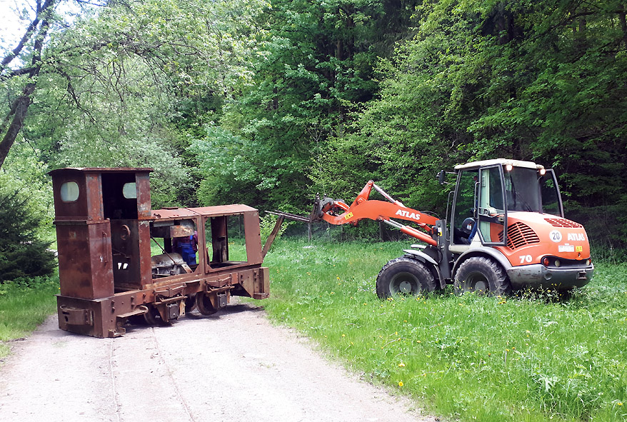 an der Stelle, wo die Lok seit einigen Jahren gestanden hat. Danach